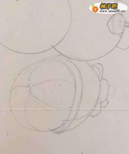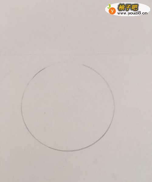 第一步 先画一个圆圈 作为第一个山竹的轮廓 上面要留一个画叶子梗的地方