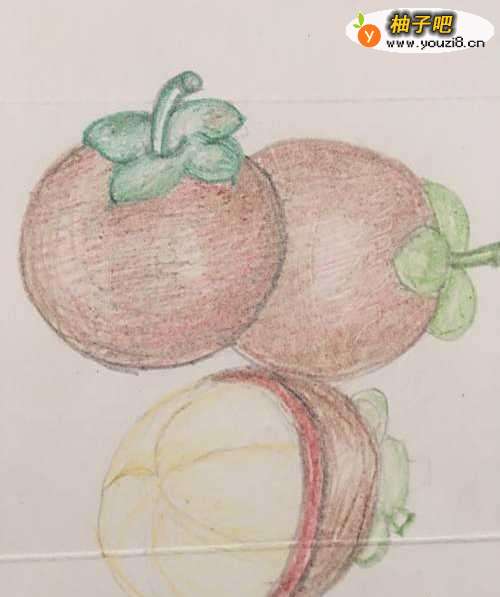 山竹 藤黄科 常绿乔木 著名的热带水果 原产马鲁古 亚洲和非洲热带地区广泛栽培 山竹 形状椭圆形 或是近圆形 外皮厚革质 果肉白色多汁 含有丰富的蛋白质 和纤维素 对营养不良 体质虚弱 能起到很好的保健作用 下面我们就画画山竹的彩铅画