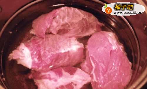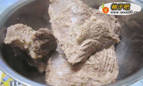 2冷水放入牛肉,烧开后撇去浮沫杂质,加入香叶、花椒、姜片继续煮30分钟左右。