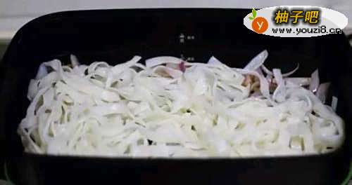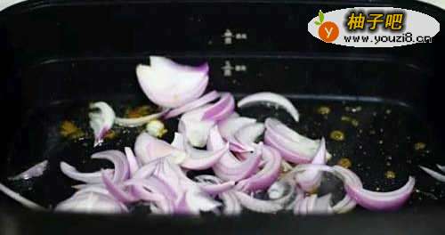 2里脊肉出锅后不用清洗,直接往锅内加少许油,等待食用油加热之后放入清洗干净并切好的洋葱快速爆炒;