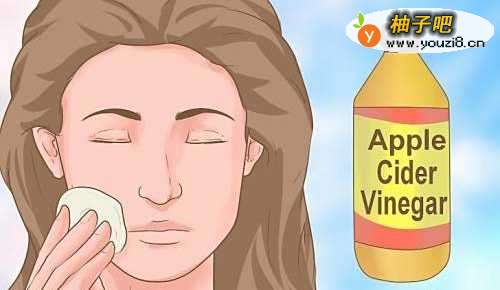 7试试苹果醋。苹果醋是一种很受欢迎的万能清洁剂,所以有些人甚至尝试在脸上使用它。把它放在一个棉球上,敷在脸上。涂抹在脸上后,用凉水冲洗干净。
