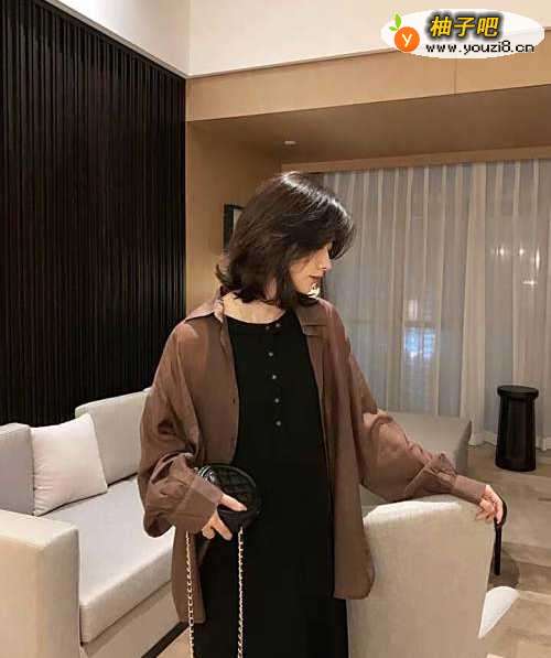 搭配六:咖啡色衬衫+黑色紧身裤黑色紧身裤是很显瘦又百搭的单品,搭配一件咖啡色衬衫,低调、沉稳又很显身材。
