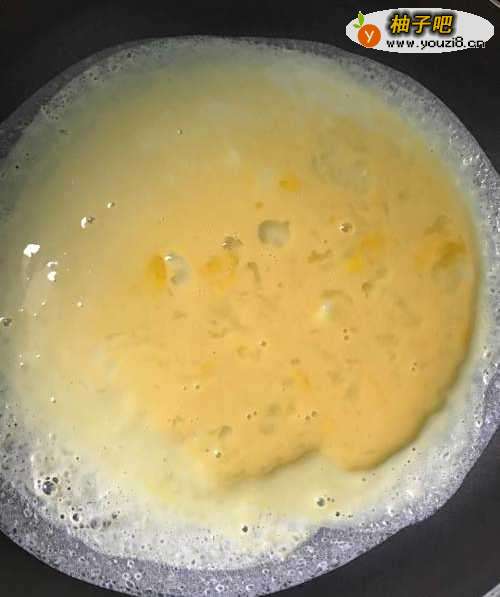 2锅里烧热,放入油,倒入鸡蛋液,煎好好,弄成小块,装到碗里。剩下的油来炒胡萝卜丝,翻炒一会即可装盘,胡萝卜丝炒太久,口感不好。