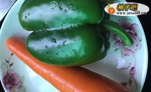 准备食材。青椒洗净切丝,胡萝卜擦丝,鸡蛋敲到碗里搅拌均匀。