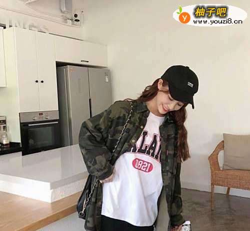 搭配二:迷彩外套+白色T恤+牛仔短裤白色T恤是很基础、百搭的服饰,外出、打底穿都很合适,搭配一条牛仔短裤,外搭一件迷彩外套,时尚、个性又很帅气。