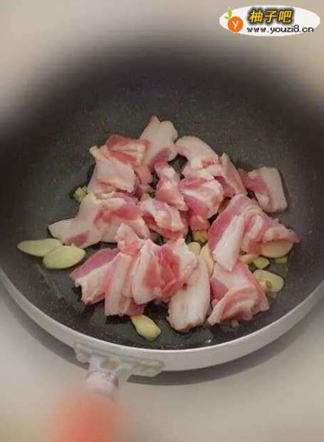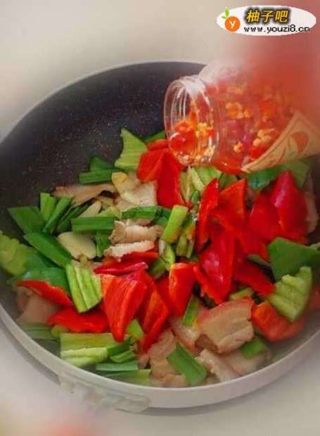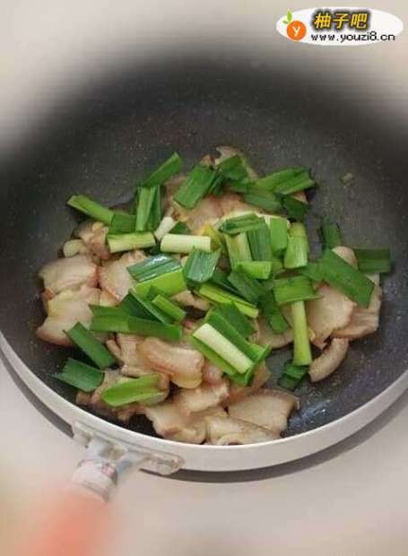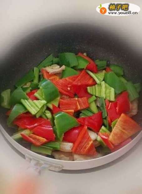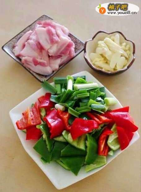 五花肉洗净、切片,青红椒切块,青葱切段,蒜切片,姜切末
