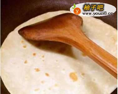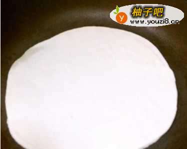 6平底锅烧热,保持中小火,锅里不!要!放!油!直接把薄饼放上!