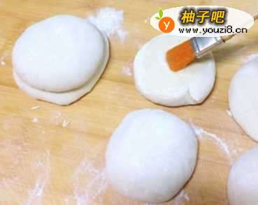 3两个小面团一组,叠放在一起,之间要刷油防粘!