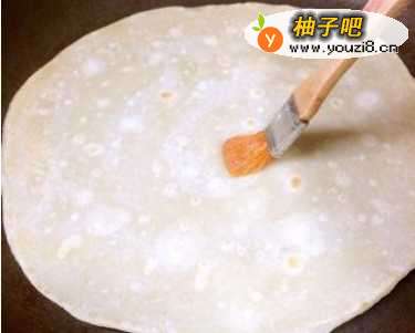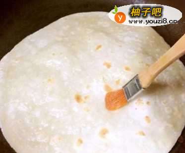 7保持中小火,大概半分钟左右翻面,用刷子给饼刷油!