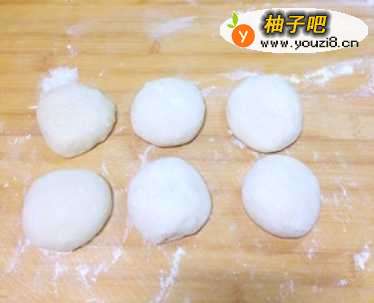 220分钟后,用筷子把面团挑出来放在面板上,面板上撒干面粉防粘!把面团揉匀(这就只能上手了)!然后均匀分成6份,分别揉圆。
