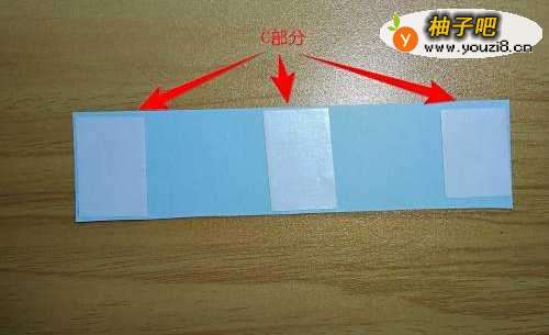 16拿起蓝色彩纸的C部分,在其背面贴上双面胶。