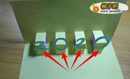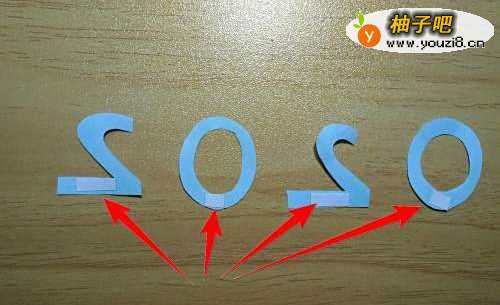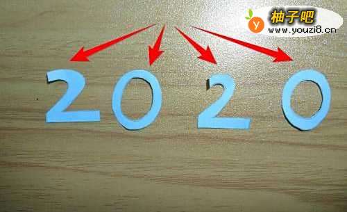 12用剪刀把2020的轮廓剪出来。