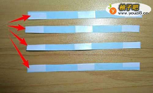 18把折痕用剪刀剪开,成为4条小蓝条。