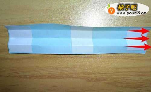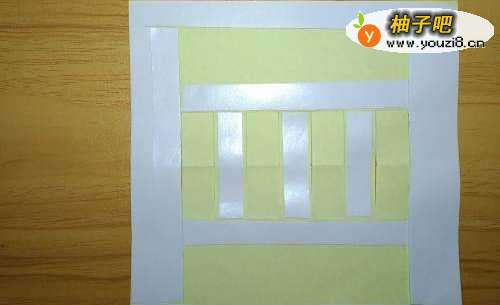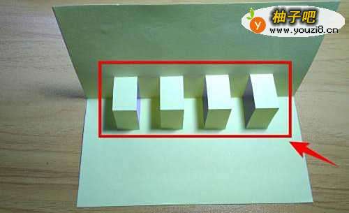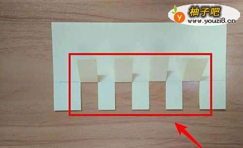 5把上图的垂直线用剪刀剪开,并把如图每间隔的长方形往上折。