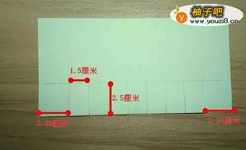 4拿起直尺跟铅笔,在上面画出如下的形状,左右两边各2.25厘米,中间每间隔为1.5厘米,高为2.5厘米。