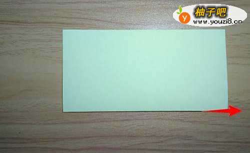 3拿起黄色彩纸,下边对折到上边,也有1条折痕。
