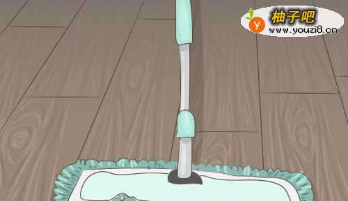 使用干燥的超细纤维拖把清洁地板以清除碎屑。