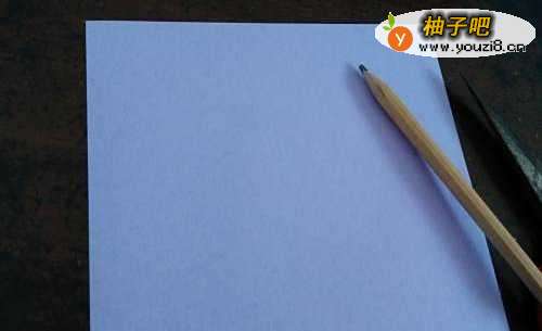 首先准备好纸,笔,剪刀,胶水。先把彩纸的中线对折。