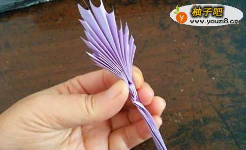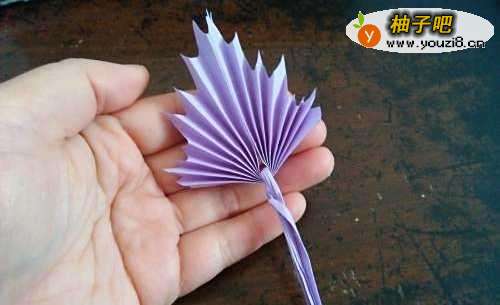 5对折后把它放在叶子的中间,然后把它拧一下,如图所示。