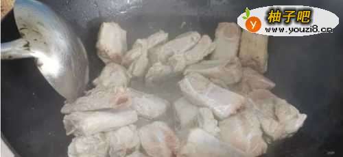 4起锅烧油,下入排骨煸炒出油脂,微黄盛出碗中。