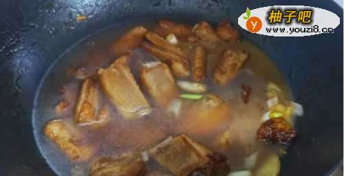 9在锅中加入适量清水,淹没过排骨即可,盖上盖子炖煮。