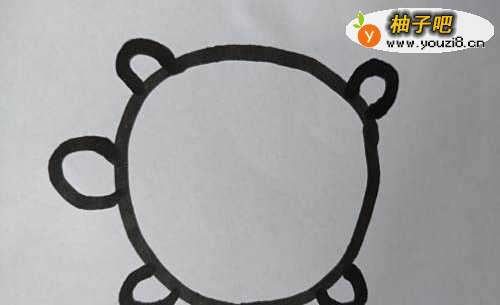 4在乌龟的右上和右下侧画出乌龟的两只后腿