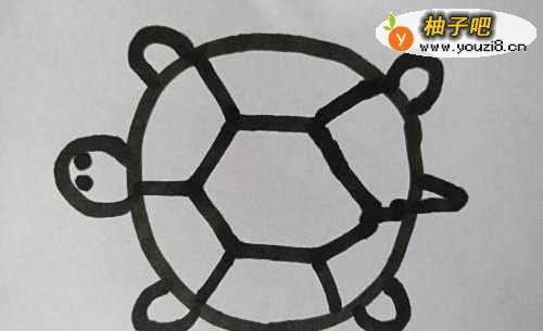 5乌龟点上眼睛,画出尾巴,画出乌龟壳上面的纹路。