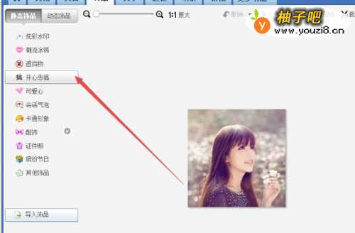 5在打开的选项卡页面中点击左侧的 开心恶搞 选项。