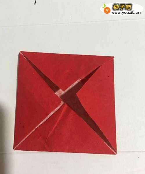 2第二步 折叠完之后取开 然后再把四个角都向里折叠至中心点