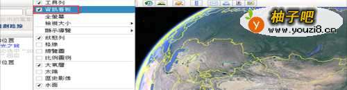 为了我们等一下在使用谷歌地球的飞行模拟器的时候有更好的体验,我们点击“检视”-》“资讯看板”,将其勾取消。