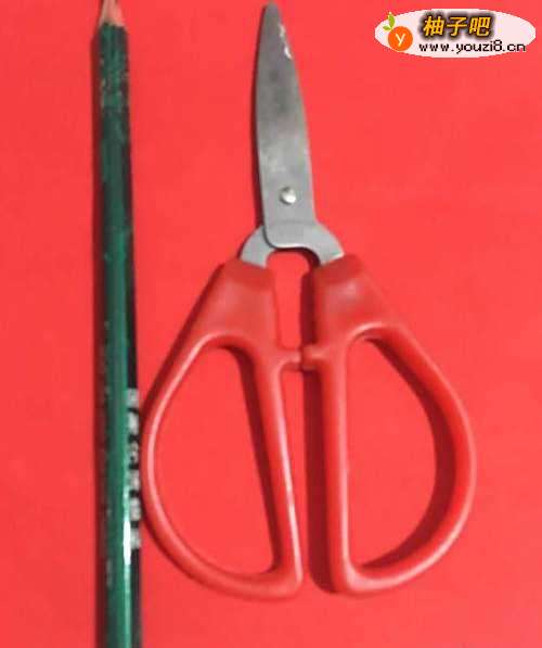 5第五步 涂实完之后 拿起手工剪刀开始裁剪 首先把图案外围的多余彩纸剪去
