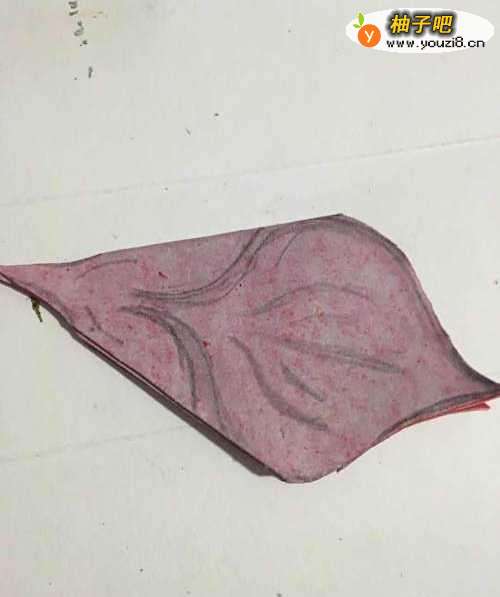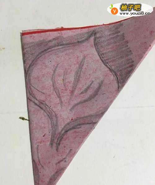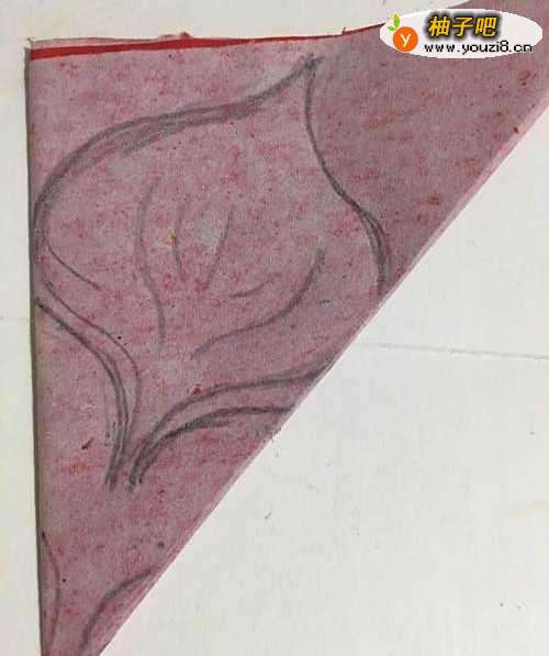 3第三步 折叠完之后 拿起绘图铅笔 画上莲花的花瓣以及花冠的图案