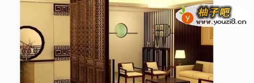 3装修中式风格,室内隔断采用传统中式屏风也很不错,选择屏风原木雕花与室内其它墙饰雕花有所搭配,形成一种很古典的中国风味道。如下图所示。