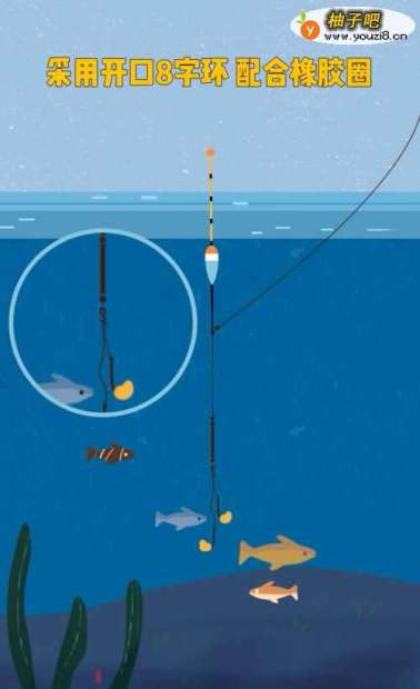 2可采用开口8字环,配合橡胶圈,换线方便,而且可以缓解对子线的拉力,最主要的是子线绑在橡胶圈上不伤线