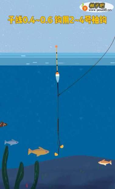 主线最大选择1.2号,子线0.4~0.6,钩子用2~4号袖钩,可采用双铅钓,防止挂草