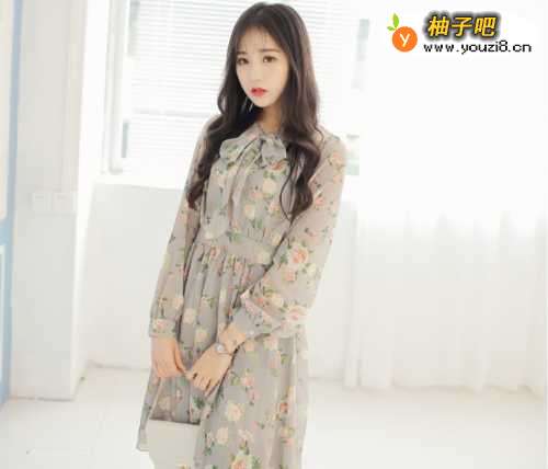 3韩版淑女复古风蝴蝶结雪纺连衣裙