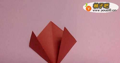 5单层的角是尾巴,内收成小尾巴样。另一角内折,再反折回,成曲线样是头部。