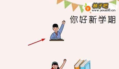 4然后我们在书本左侧画一个男生,一个女生,位置如下图箭头所示