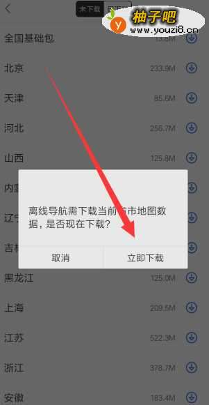 7这时,弹出一个窗口,提醒你下载当前省市地图数据,是否现在下载?,点击立即下载,就可以下载离线导航包了,如图所示