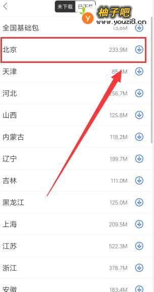6这时,你需要在下面选择中,找到你所在城市的基础包,例如你需要点击北京的离线包,那么你就要下载北京的,点击后面的下载,如图所示