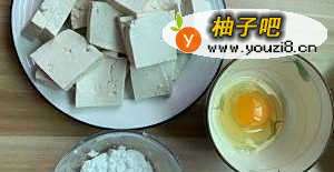 2豆腐切块,鸡蛋一个,淀粉适量。