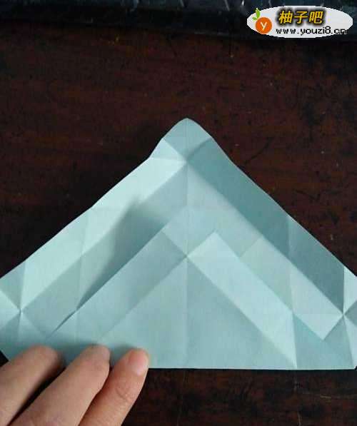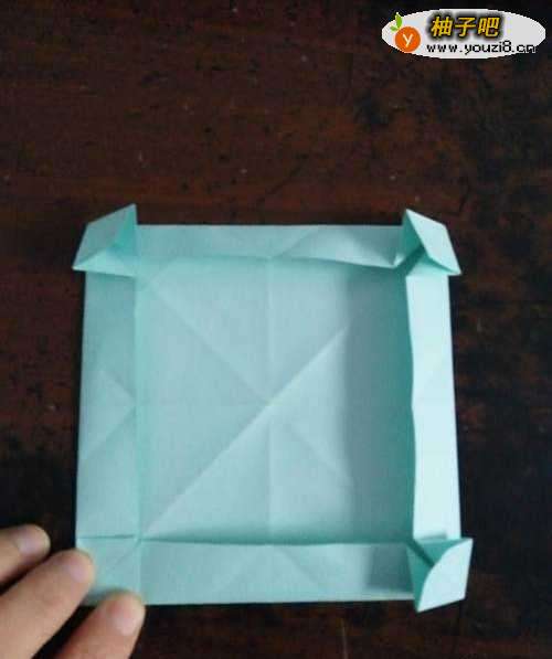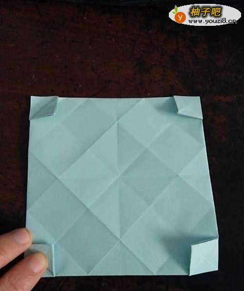 7翻过来后,我们把四个小角向内折,如图所示。然后再翻过来。