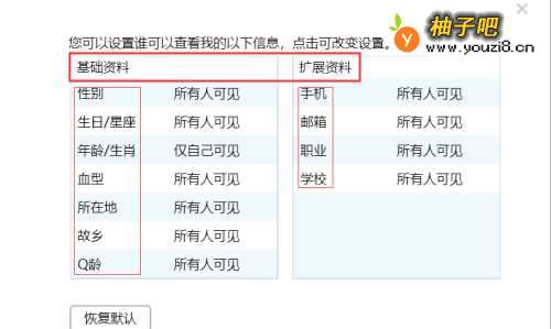 6在权限设置页面找到“年龄/生肖”,然后在其右侧选择“仅个人可见”,即设置完毕了。