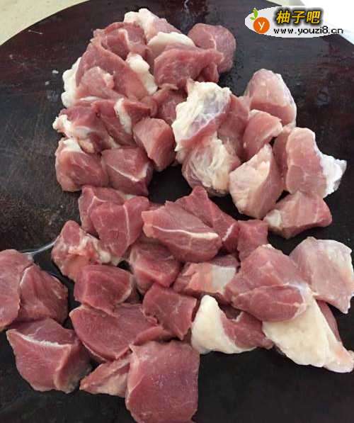 猪肉、香葱清洗干净后,切小块、小段备用;