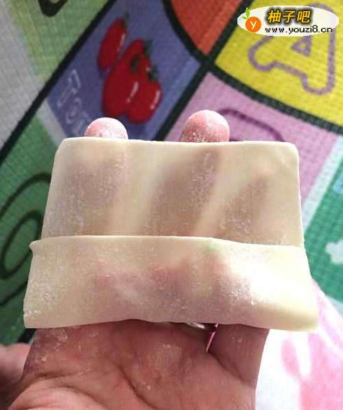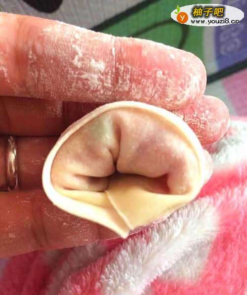 5最后,把卷好的两头对折,一个漂亮的云吞就出来了;