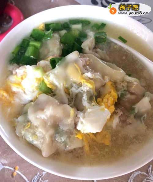 3为了使营养更加丰富,我是在出锅之前,往锅里打入了一个鸡蛋,搅拌开就成了简单的蛋花汤,这样的云吞更加美味。