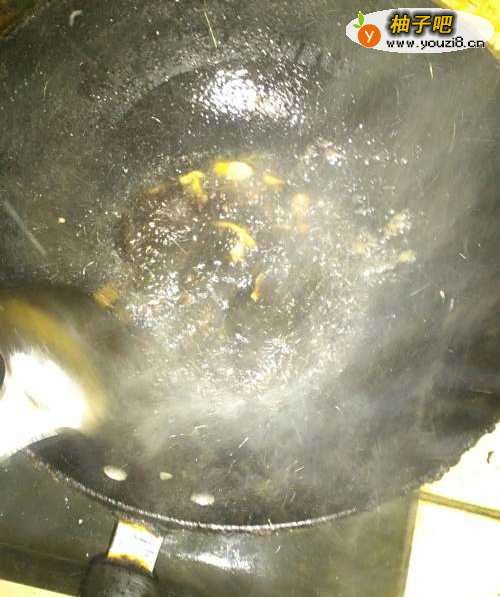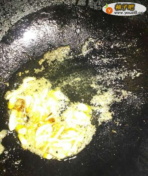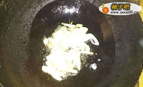 10下入葱姜丝炒出香味