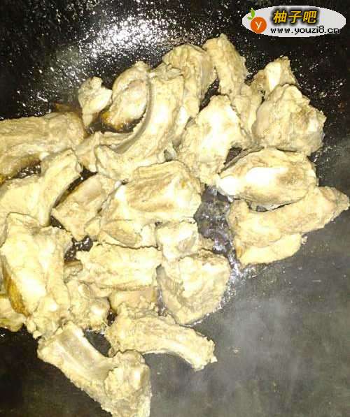 14下入排骨,翻炒