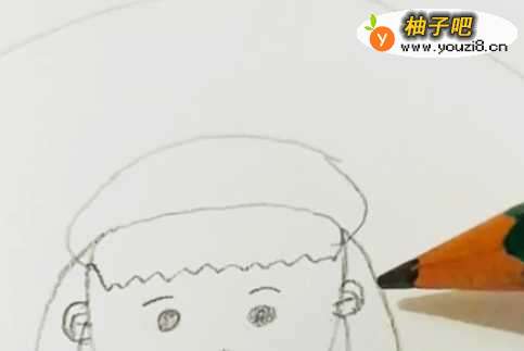 2开始画小姑娘的帽子和头发的轮廓,小姑娘戴的帽子是趴沫贝雷帽。