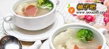 注意调味用料投放顺序,特别注意熬汤时不宜先放盐。因盐会使原料中水分排出,蛋白质凝固,鲜味不足。通常60℃~80℃温度易引起部分维生素破坏,而煲汤使食物温度长时间维持在85℃~100℃。故在汤中加蔬菜应随放随吃,以减少维生素C破坏。汤中适量放入味精、香油、胡椒、姜、葱、蒜等调味品,使其别具特色,但注意用量不宜太多,以免影响汤的原味。